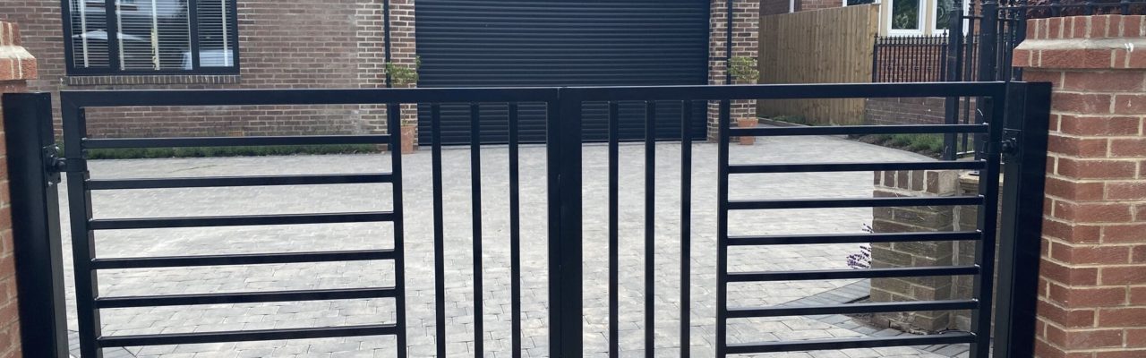 Contemporary Automated wing gates with pedestrian gate to match Home > Projects > Domestic > Contemporary Automated wing gates with pedestrian gate to match July '20 By Riverside Metalwork Contemporary, galvanised and power coated automated wing gates with matching pedestrian gate.